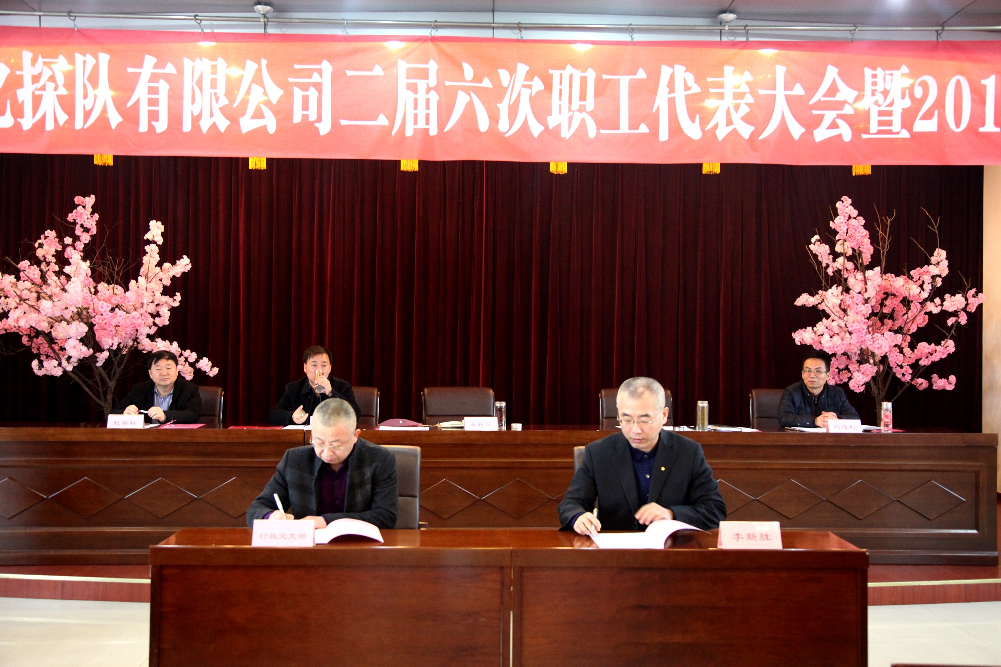 ? ? ? 會上,王新坪同志與班子各成員,班子各成員與各分管實體、部門之間,層層簽訂了2019年度生產經營目標責任書、黨風廉政建設責任書和安全生產、環境保護、治安保衛責任書;各實體負責人、機關各部門負責人在分組討論會上分別進行了述職述廉,同時積極建言獻策,對物化探隊有限公司未來更好發展提出了意見和建議。對2018年度做出優異成績的先進集體、優秀員工及科技創新集體、業績突出的集體、優秀信息員進行了表彰獎勵。同時會議對隊級領導班子、5名班子成員及18名中層正職領導干部2018年度工作進行了民主測評。