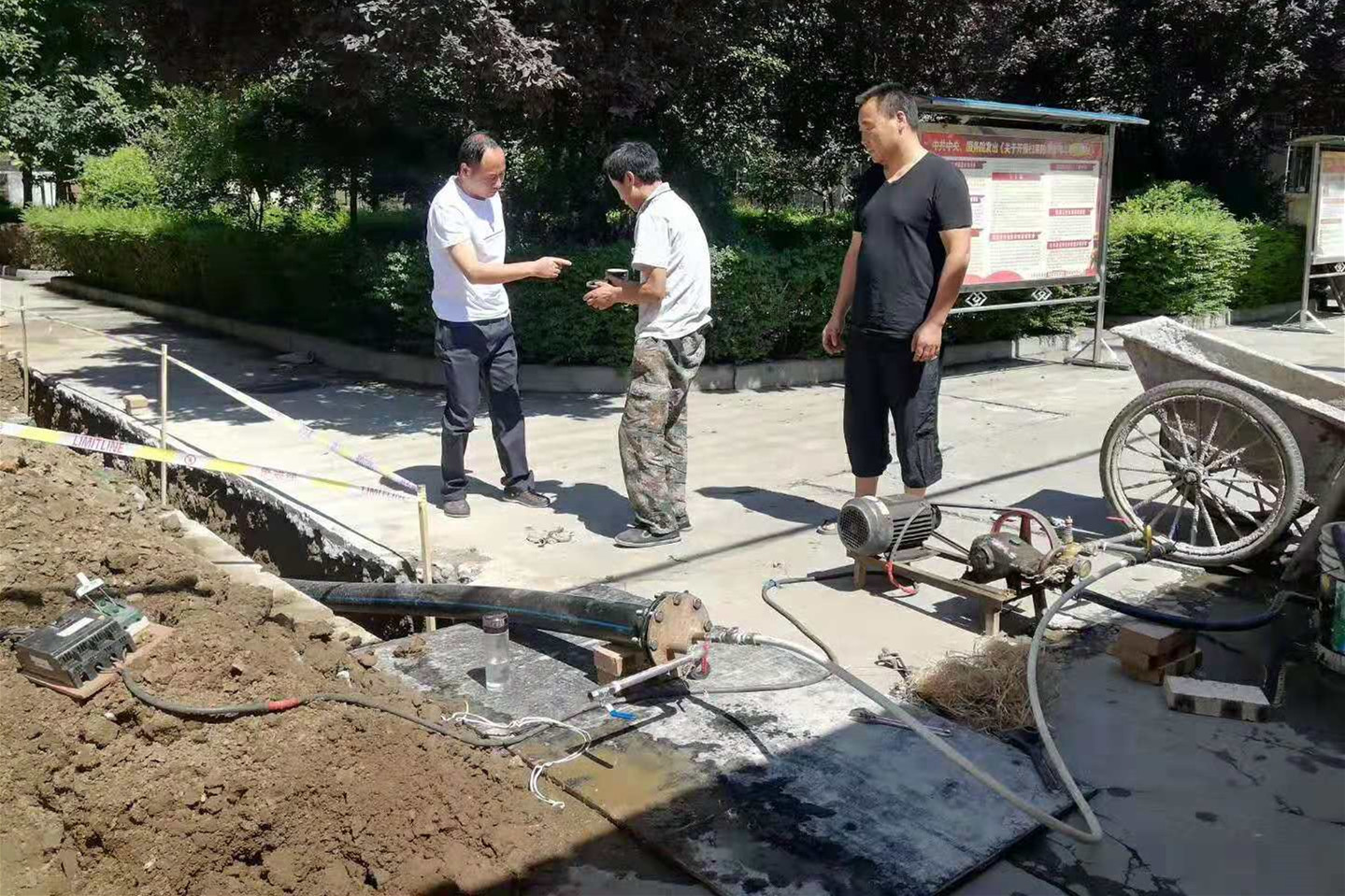 ? ? 物化探隊周至基地有職工家屬213戶,水管線路在維修改造中,一是由于院內主管網年代已久、管路老化,且分布復雜,必須重新開挖鋪設新網。二是與周邊村民的歷史遺留問題有待解決。三是離退休職工及家屬阻力較大,因維修改造須穿墻破壁,破壞了住戶房屋原有的裝修格局。致使水網改造工作困難重重。