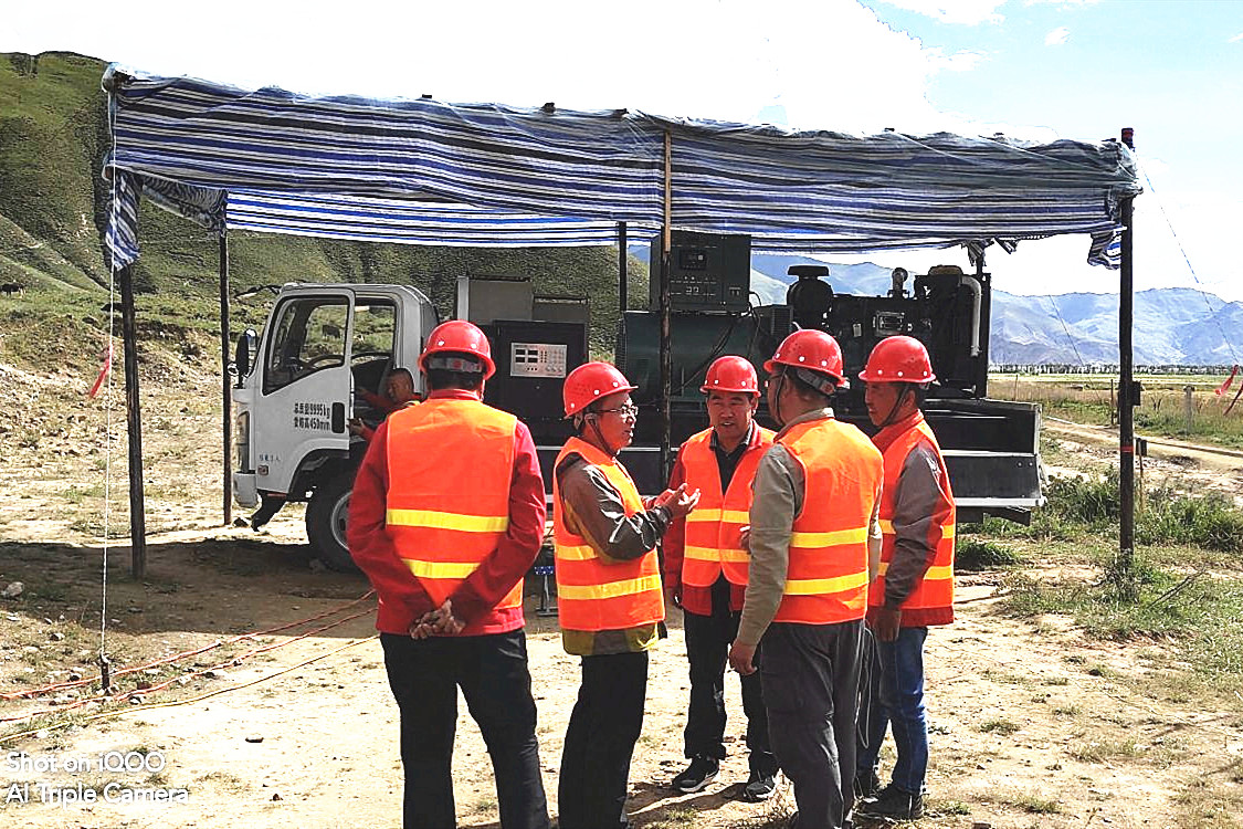 ? ? 項(xiàng)目工作區(qū)位于西藏甲瑪-驅(qū)龍礦區(qū),海拔4200-5300m,高差1100?m。在項(xiàng)目勘查中,大功率多場源張量CSAMT是一種前人未做過的物探方法,應(yīng)用于本項(xiàng)目是一次新的嘗試和挑戰(zhàn)。物化探隊(duì)深部找礦地球物理研究中心通過大量試驗(yàn)、深入研究和反復(fù)驗(yàn)證,攻克了多場源張量CSAMT場源敷設(shè)、收發(fā)距確定、接收采集、提高探測深度、壓制礦區(qū)復(fù)雜電磁干擾、高海拔復(fù)雜地形條件下安全施工等多項(xiàng)技術(shù)難題,成功獲取了高質(zhì)量的野外數(shù)據(jù)和真實(shí)可靠的第一手資料,物探初步解釋成果獲得了地質(zhì)專家的高度認(rèn)可。