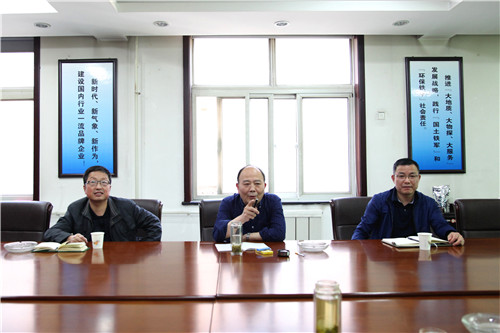 ??? 4月14日下午,地礦集團(tuán)公司總工程師王根寶一行來我公司檢查指導(dǎo)半工業(yè)試驗(yàn)園區(qū)及地質(zhì)災(zāi)害智能監(jiān)測預(yù)警系統(tǒng)平臺(tái)建設(shè)及運(yùn)行情況,并與公司班子成員及地災(zāi)監(jiān)測中心相關(guān)人員進(jìn)行座談。??