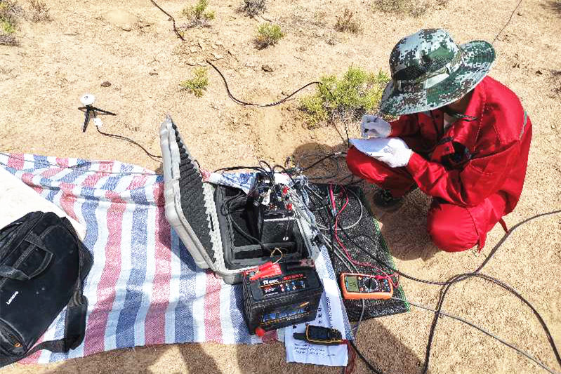 ??? 由于地質條件復雜,對于攻克勘查技術難點又成為這群技術員新的挑戰。但是對于他們來說,辦法總比困難多,荒涼的只是沙漠,豐滿的卻是他們的人生,面對技術上的困難環境工程公司的參戰人員沒有退縮,他們從一開始就著手探討研究應對措施,加強現場試驗;識別并避開可能的干擾源;精細地表地物調查;設置遠磁參考,降低噪聲干擾,提高資料品質等多項針對措施,并在現場施工中取得了良好的效果,形成了針對該區域大地電磁測量的一套應用效果好、生產效率高的施工方法。該勘查技術的創新,為今后面對此類項目的施工積累了寶貴經驗。
