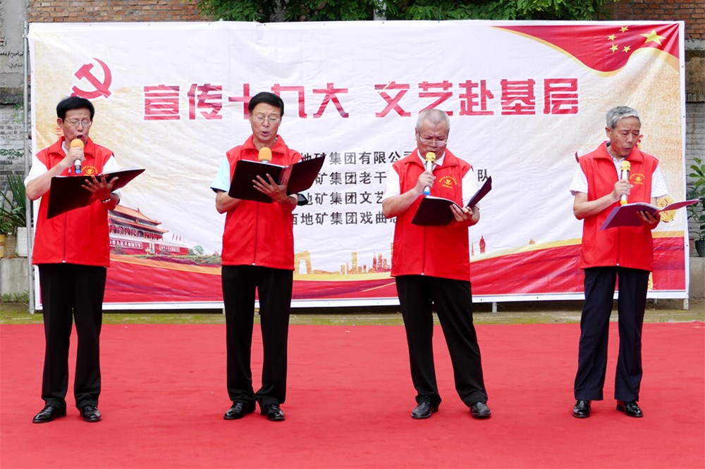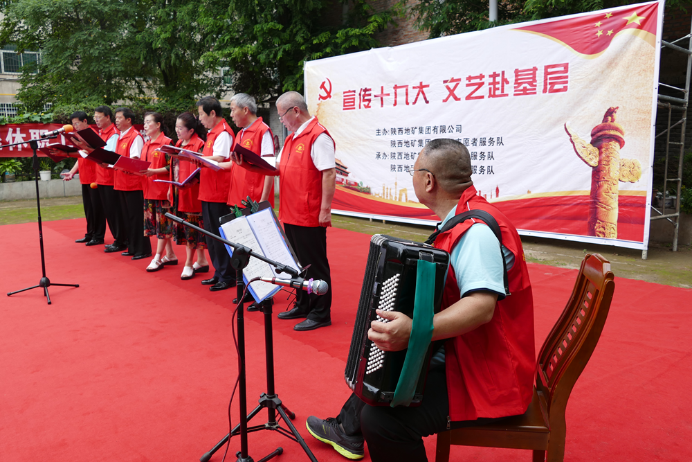 ? ? 7月17日上午,陜西地礦集團(tuán)文藝小分隊(duì)“宣傳十九大,文藝赴基層”主題活動(dòng)首場(chǎng)演出在物化探隊(duì)周至管理處上演。集團(tuán)公司離退休管理中心主任李崇勇、副主任張寧,隊(duì)黨委書記、執(zhí)行董事、總經(jīng)理王新坪,黨委副書記、紀(jì)委書記、工會(huì)主席趙養(yǎng)科出席了演出活動(dòng),并與廣大離退休黨員干部職工一同觀看了演出。